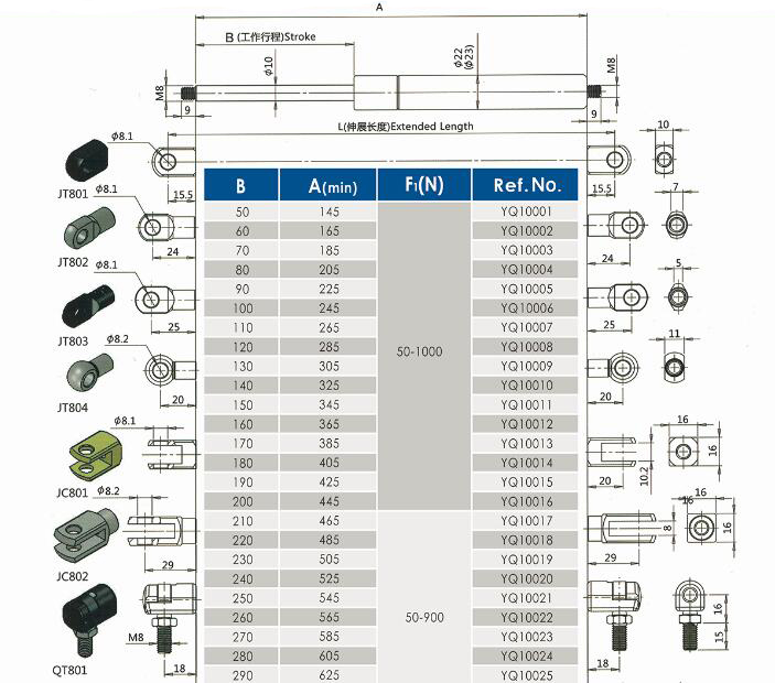 注:由于氣彈簧是非標(biāo)準(zhǔn)的,以上僅為型號的一部分。我們可以根據(jù)客戶的要求定制。