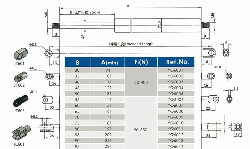 注:由于氣彈簧是非標準的,以上僅為型號的一部分。我們可以根據客戶的要求定制。
