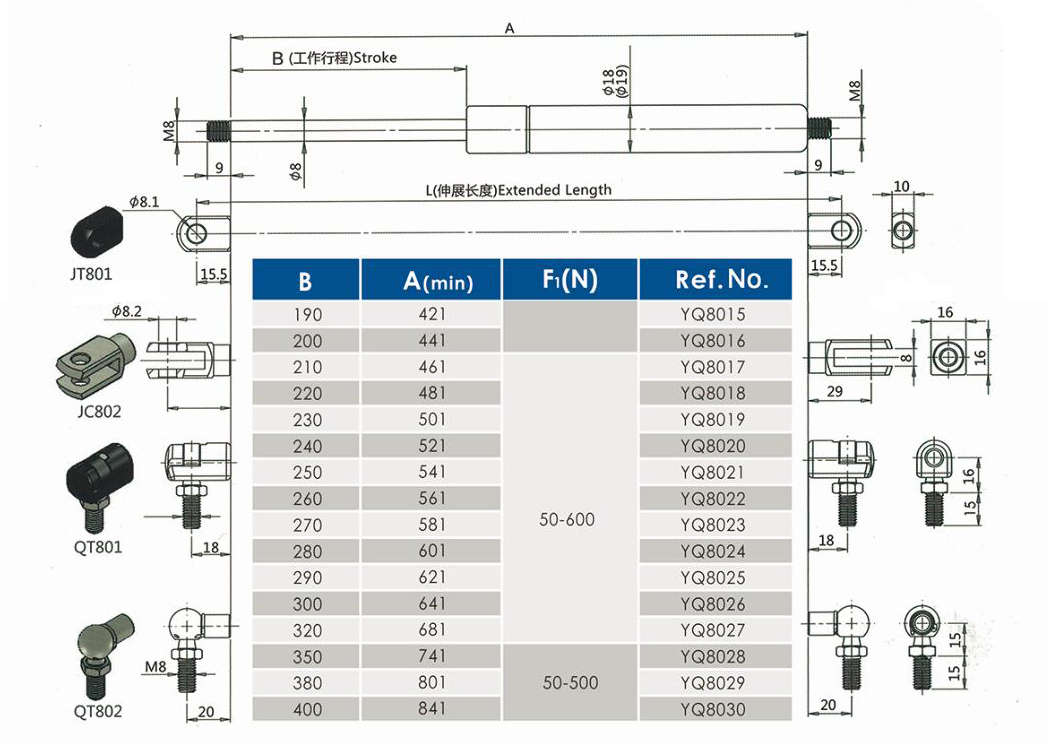 注:由于氣彈簧是非標準的,以上僅為型號的一部分。我們可以根據客戶的要求定制。