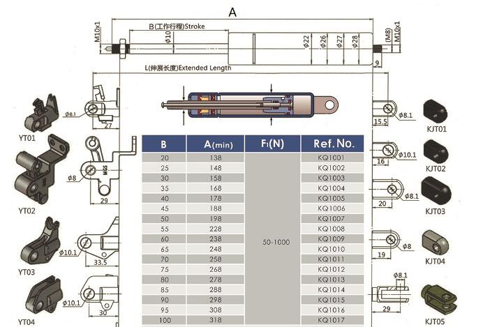注:由于氣彈簧是非標準的,以上僅為型號的一部分。我們可以根據客戶的要求定制。